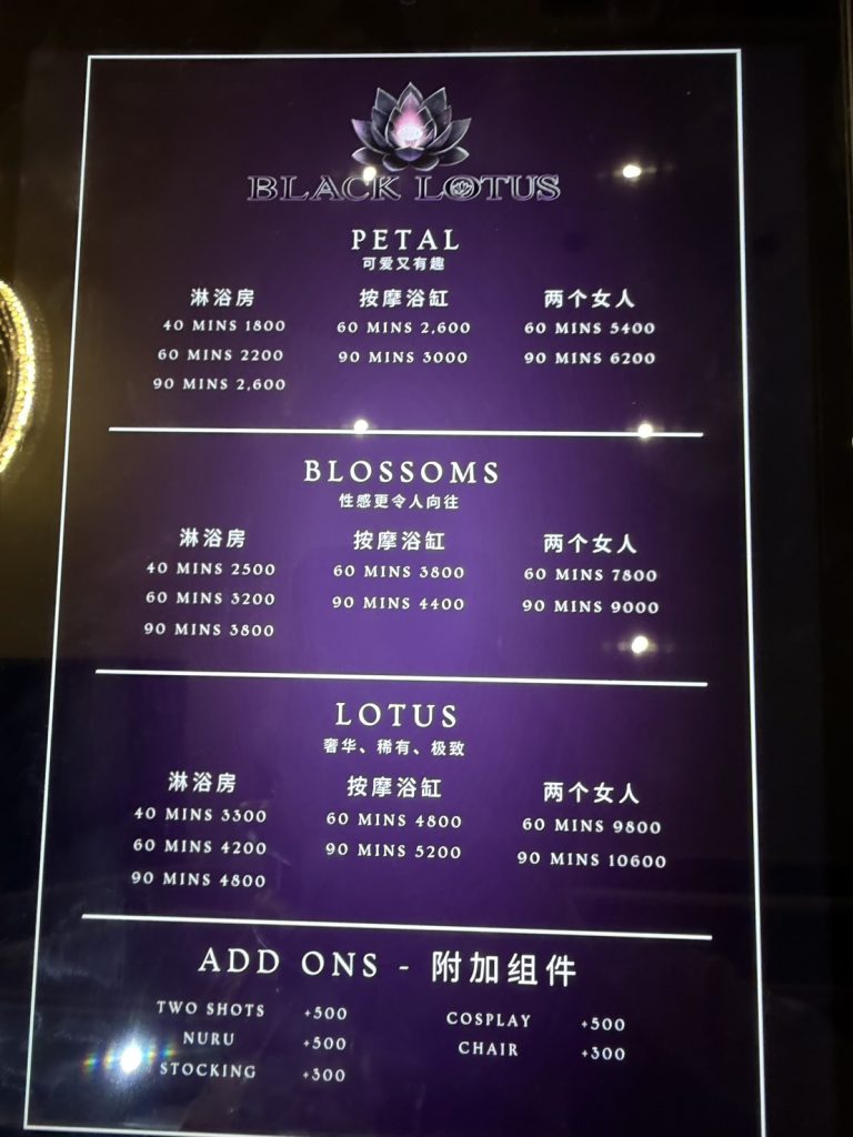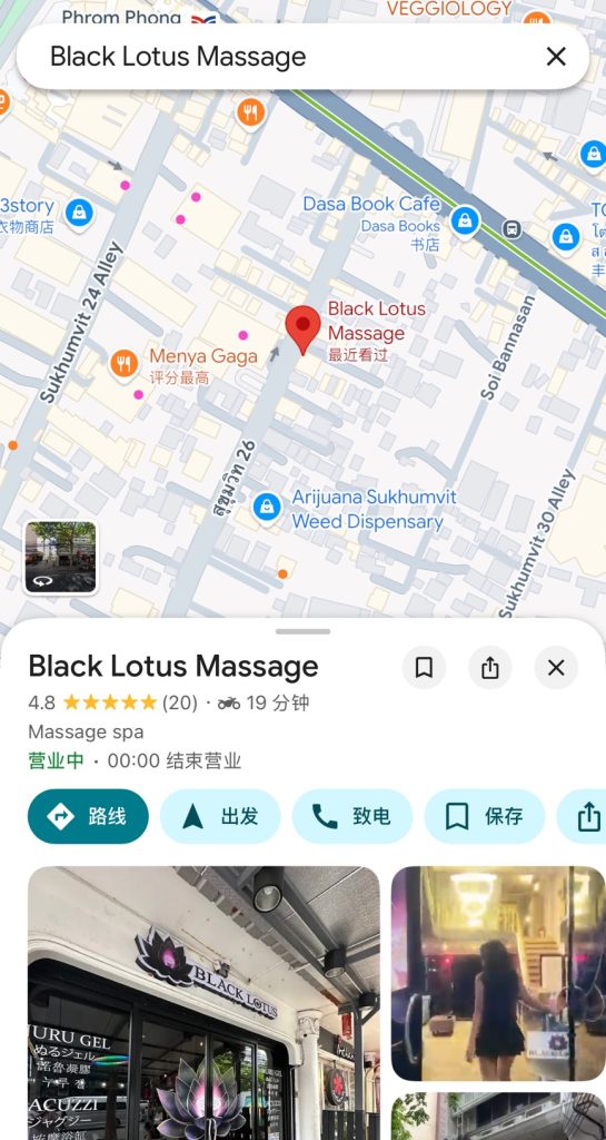 Black Lotus是一家位于素坤逸26巷的日式按摩店,位于曼谷的市区,这条路上聚集了大量日式按摩店,唯有Black Lotus靠着绝对的服务质量以及颜值,在这条路上杀出了一条血路,成为了这条路上的行业佼佼者。这家店以精致化的服务而出名,所以想体验好的服务质量的兄弟们可以冲了。