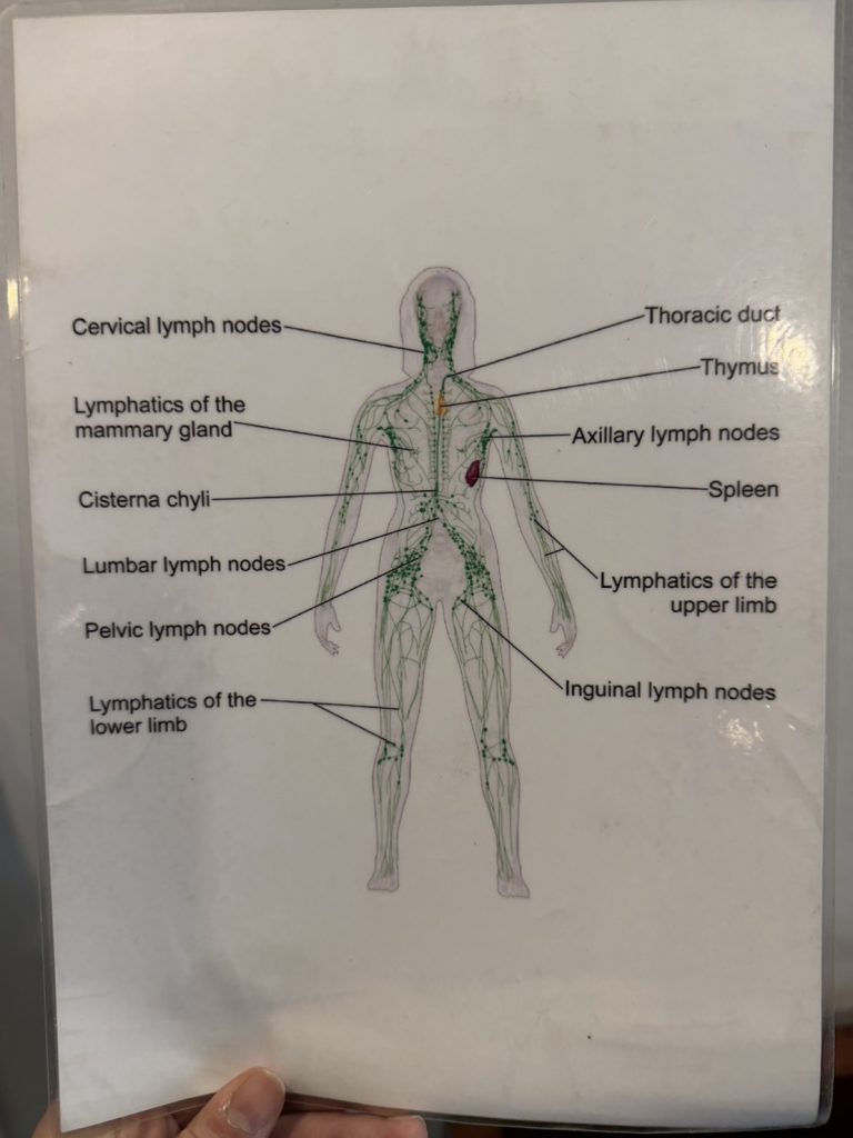 这是一张人体淋巴系统图,这些穴位代表着店里会按照这些穴位展开专业的疗理按摩服务。